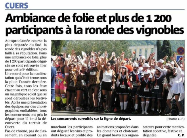 Plus de 1200 participants ! Record d’affluence avec plus de 1200 participants qui se sont élancés sous un soleil magnifique sur la 9ème édition de la Ronde des Vignobles ! Un grand MERCI à tous pour vos déguisements, vos sourires et votre bonne humeur !!! Découvrez les premiers clichés de notre photographe officiel Thierry Jouanin. …
